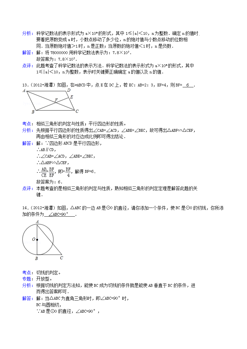 【文档名称】 2012年湖南省湘潭市中考数学真题及答案(Word版).doc