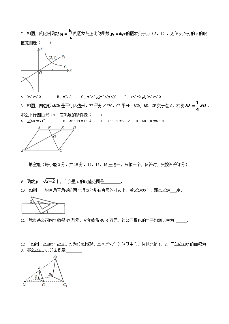 【文档预览】 无忧考网整理发布2012年辽宁省阜新市中考数学真题及答案(Word版),前五页预览如下: