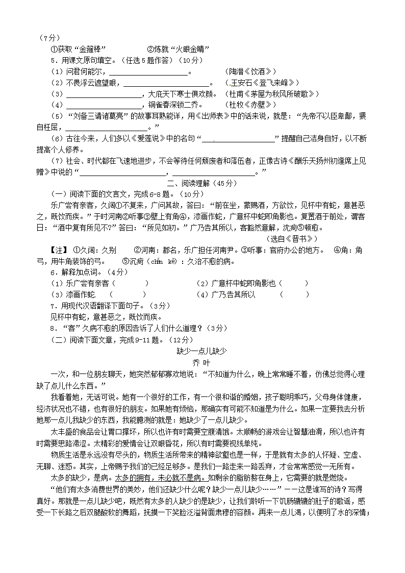 【文档名称】 2010年福建省龙岩市中考语文真题及答案(Word版).doc