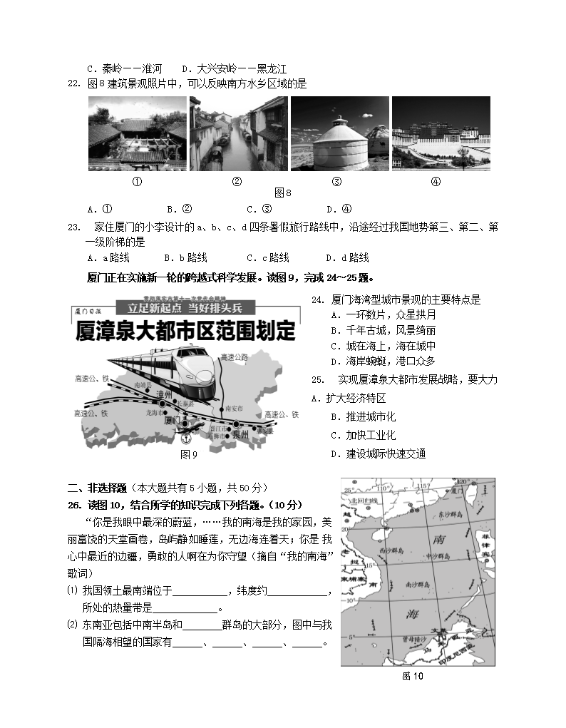 【文档名称】 2012年福建省厦门市中考地理真题(Word版).doc