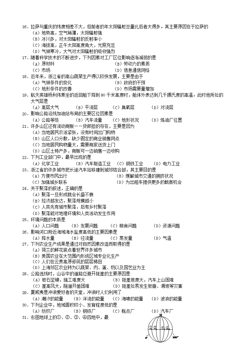 【文档名称】 2005年浙江高中会考地理真题及答案(Word版).doc