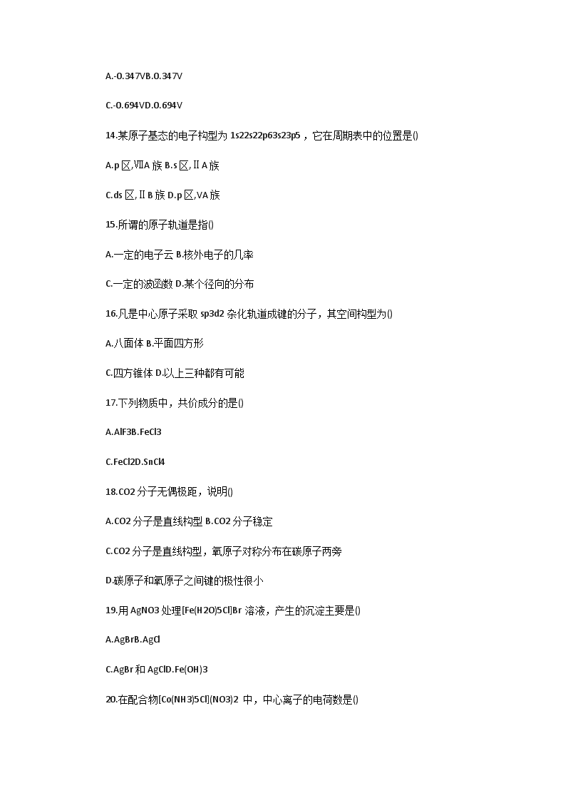 【文档预览】 无忧考网整理发布2019年广东暨南大学普通化学考研真题(Word版),前五页预览如下: