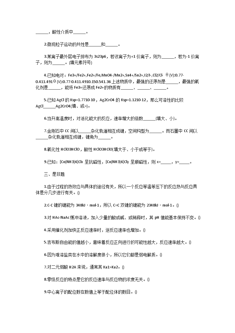 【文档名称】 2019年广东暨南大学普通化学考研真题(Word版).doc