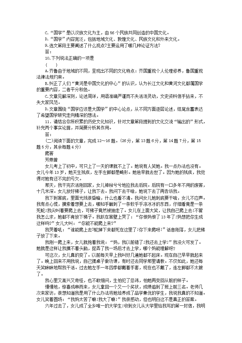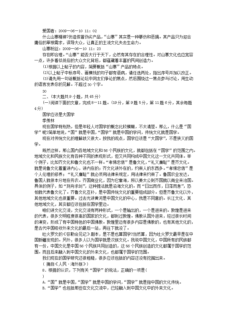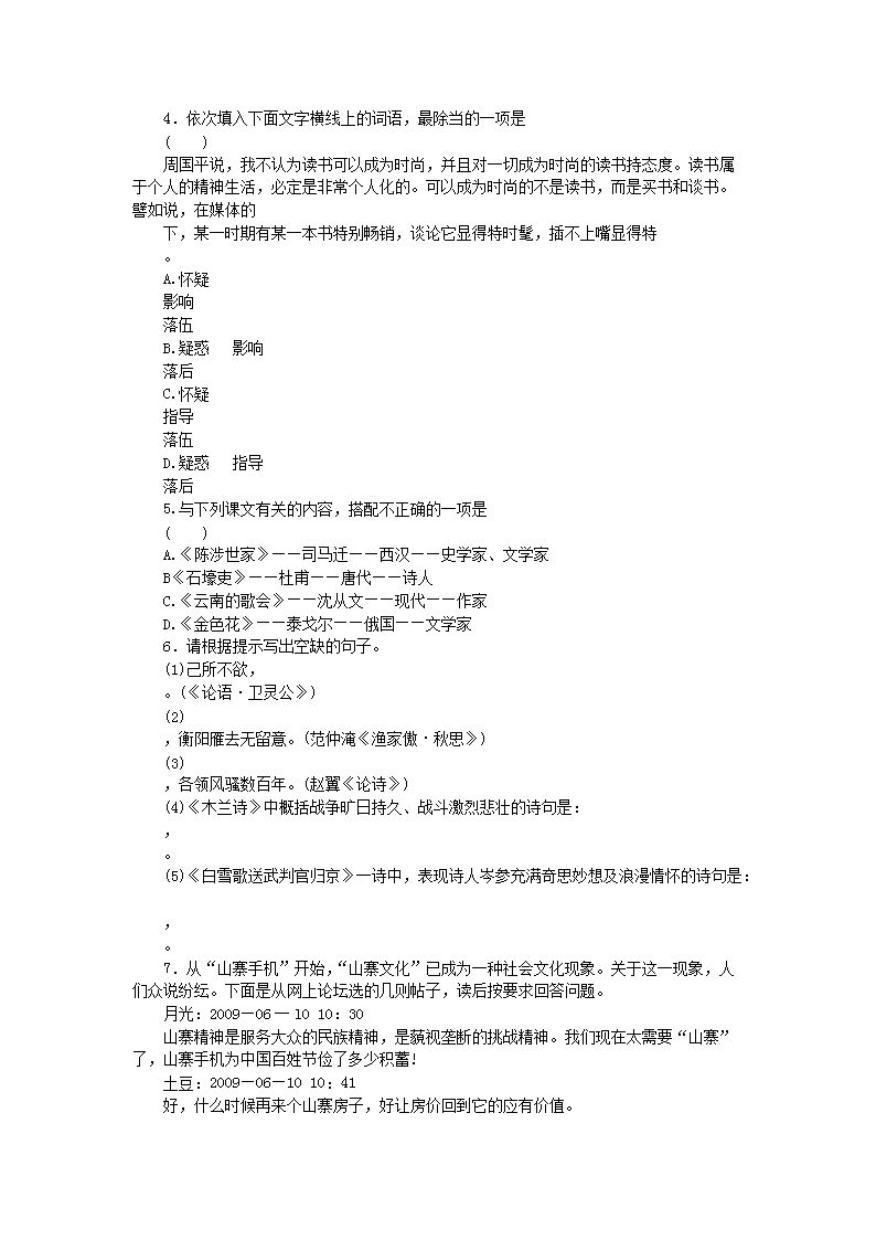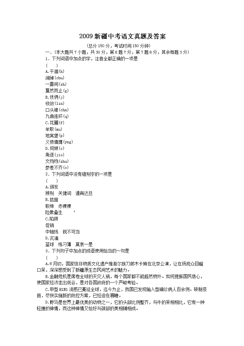 【文档名称】 2009新疆中考语文真题及答案(Word版).doc
