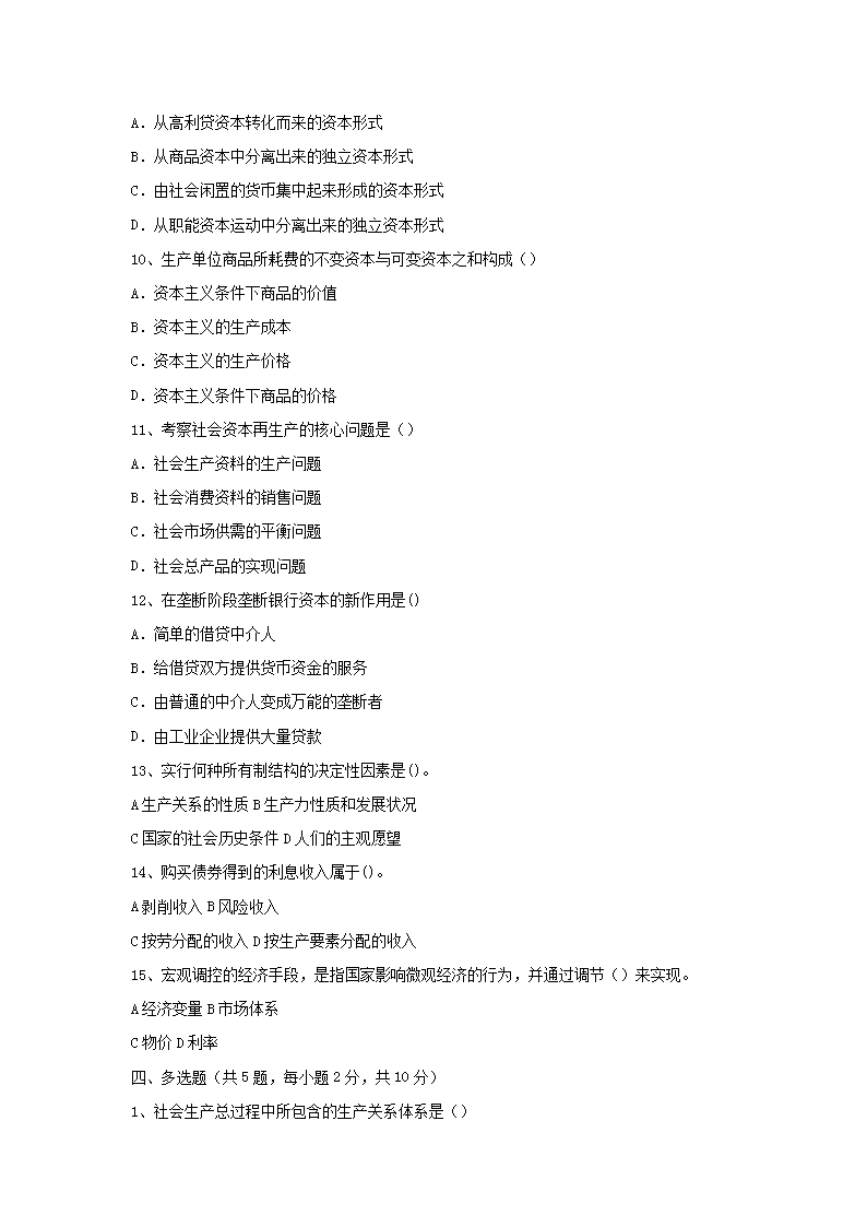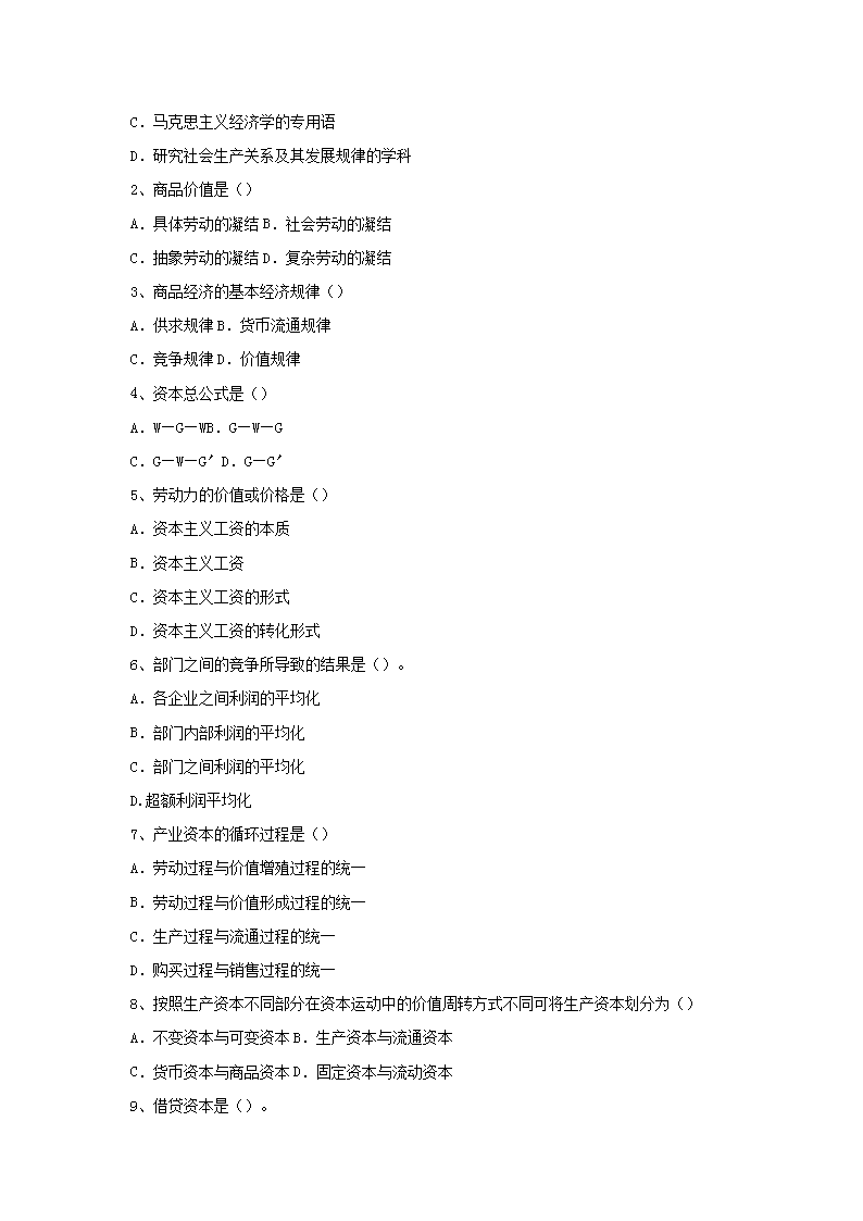 【文档名称】 2009年江西农业大学政治经济学考研真题(Word版).doc