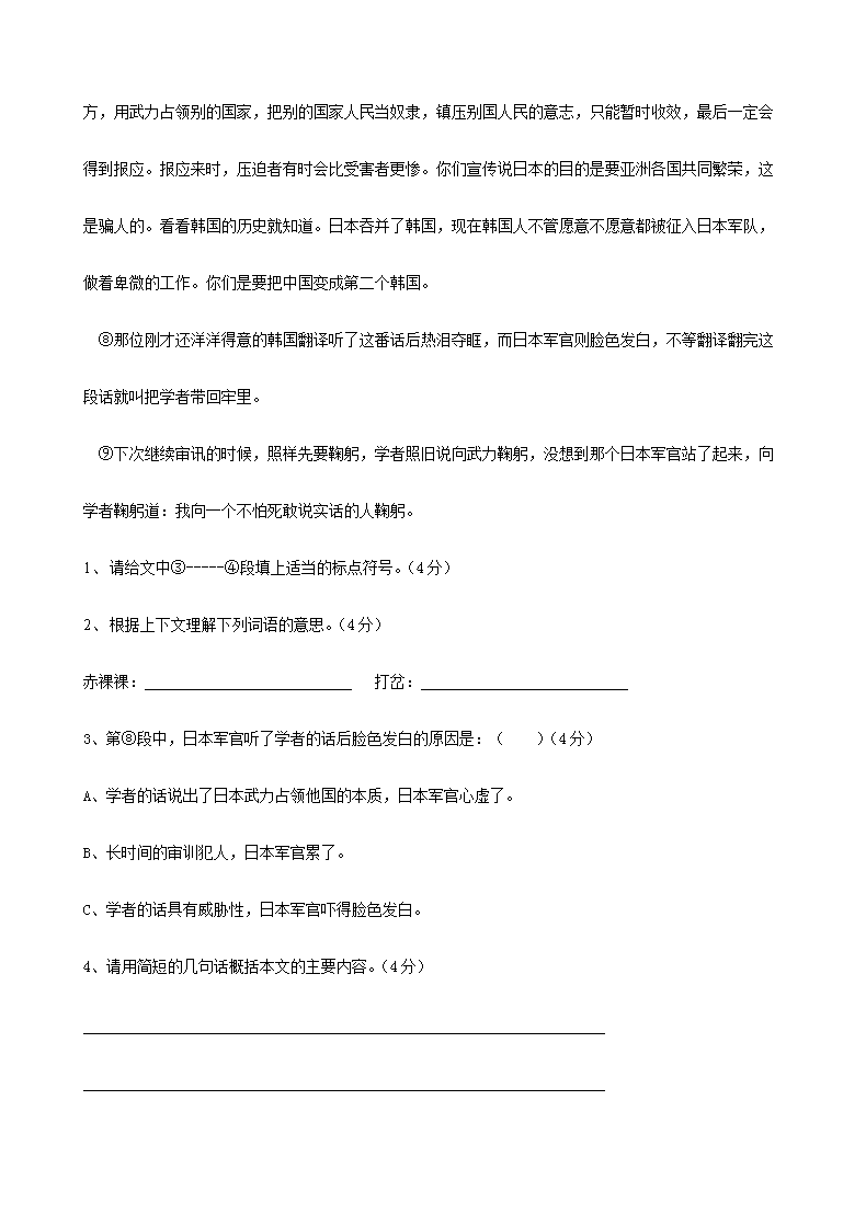 【文档预览】 无忧考网整理发布2013年上海小升初语文考试真题(Word版),前五页预览如下: