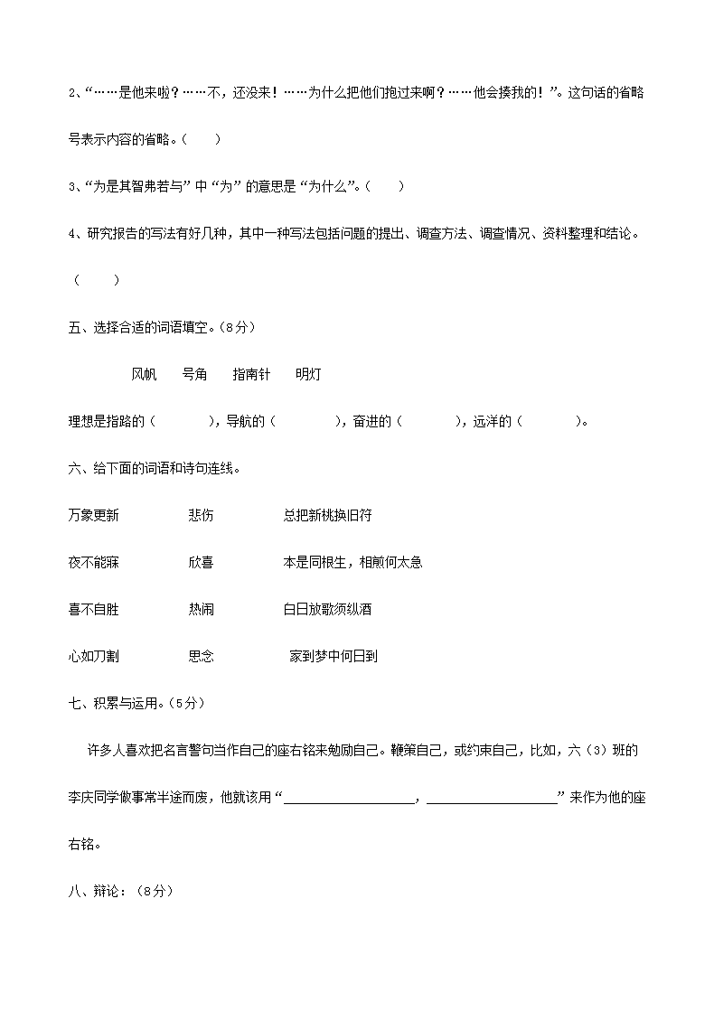 【文档名称】 2013年上海小升初语文考试真题(Word版).doc