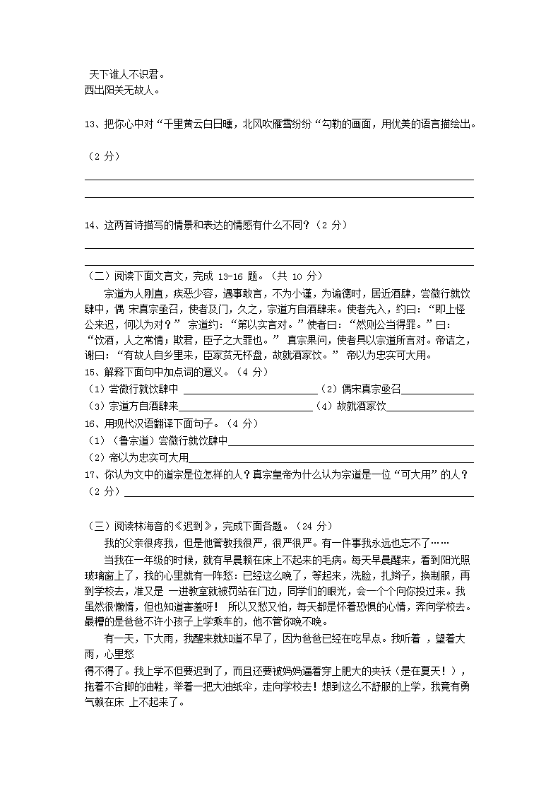 【文档名称】 2013年四川小升初语文考试真题(Word版).doc