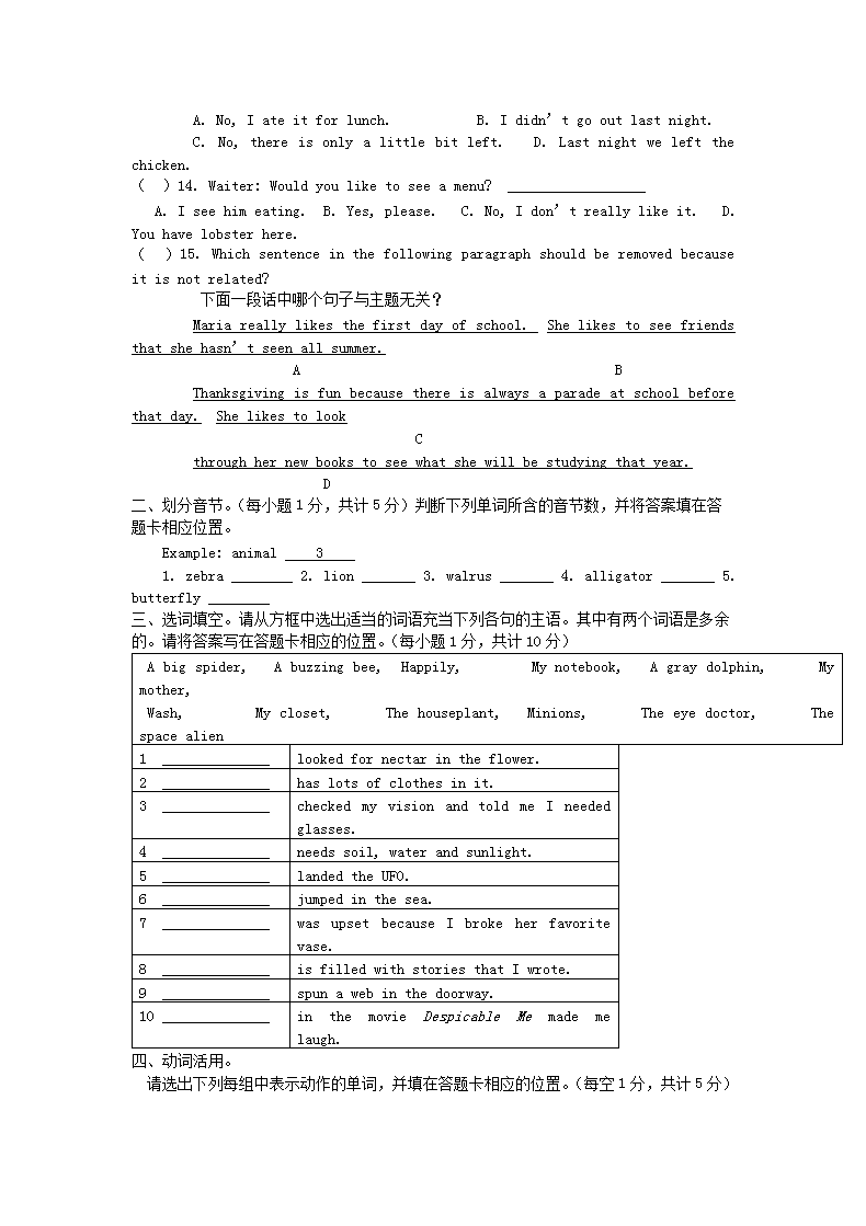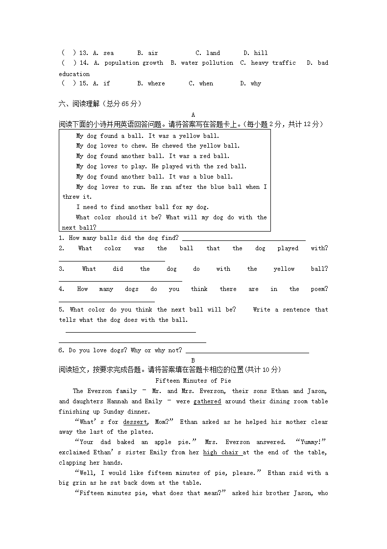 【文档名称】 2014年河南小升初英语考试真题(Word版).doc