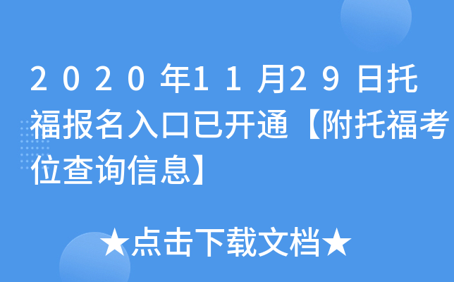 点击进入>>>2020年11月29日托福报名及考位查询入口【已开通】