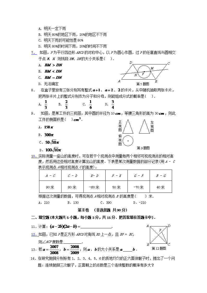 【文档预览】 无忧考网整理发布2008年广东省佛山市中考数学试题及答案(Word版),前五页预览如下: