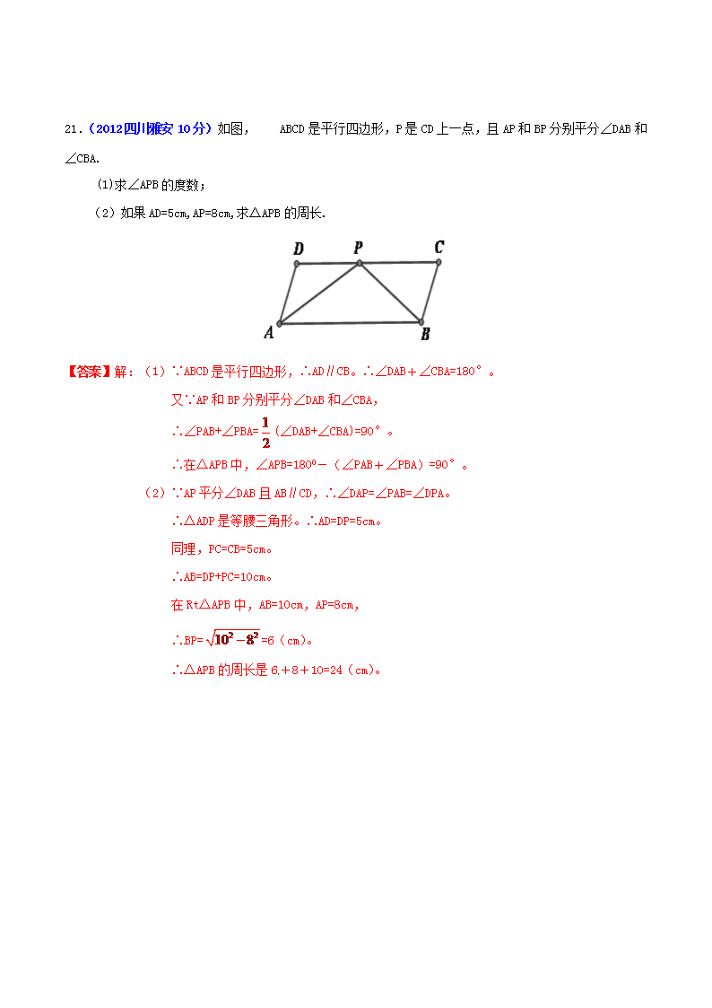 【文档名称】 2012年四川省雅安市中考数学真题及答案(Word版).doc