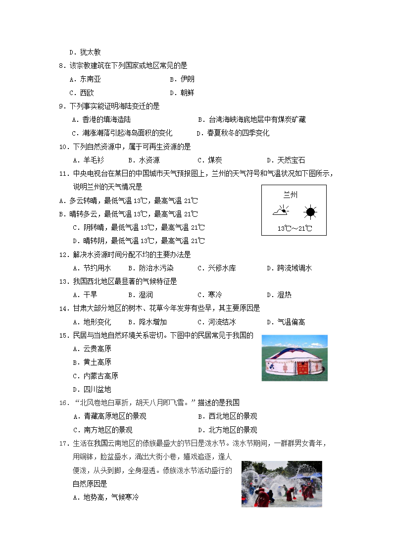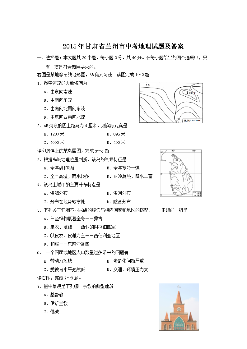 【文档预览】 无忧考网整理发布2015年甘肃省兰州市中考地理试题及答案(Word版),前五页预览如下: