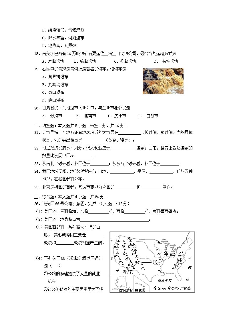【文档名称】 2015年甘肃省兰州市中考地理试题及答案(Word版).doc