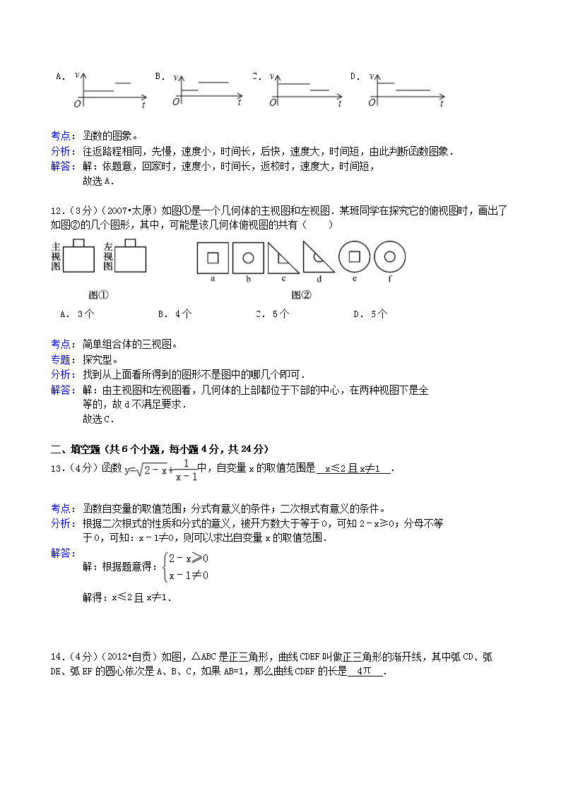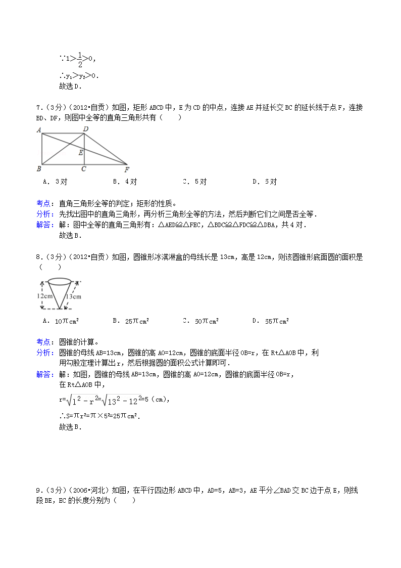 【文档名称】 2012年四川省自贡市中考数学真题及答案(Word版).doc