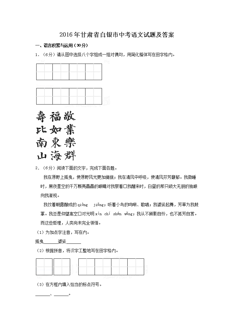 【文档名称】 2016年甘肃省白银市中考语文试题及答案(Word版).doc