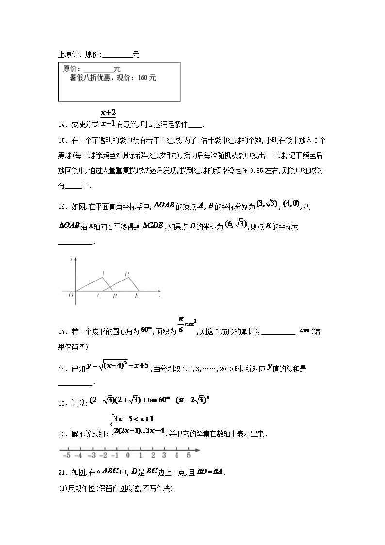 【文档名称】 2020年甘肃省金昌市中考数学试题及答案(Word版).doc