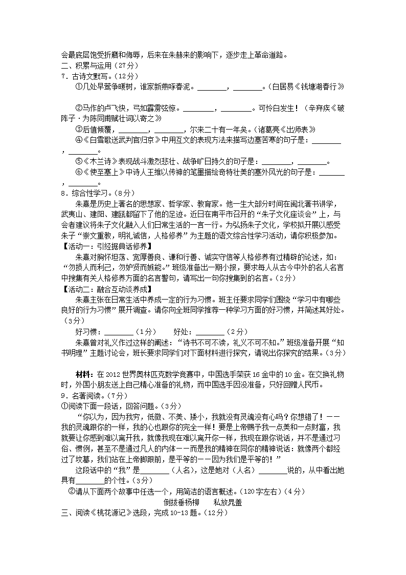 【文档名称】 2012年福建省南平市中考语文真题及答案(Word版).doc