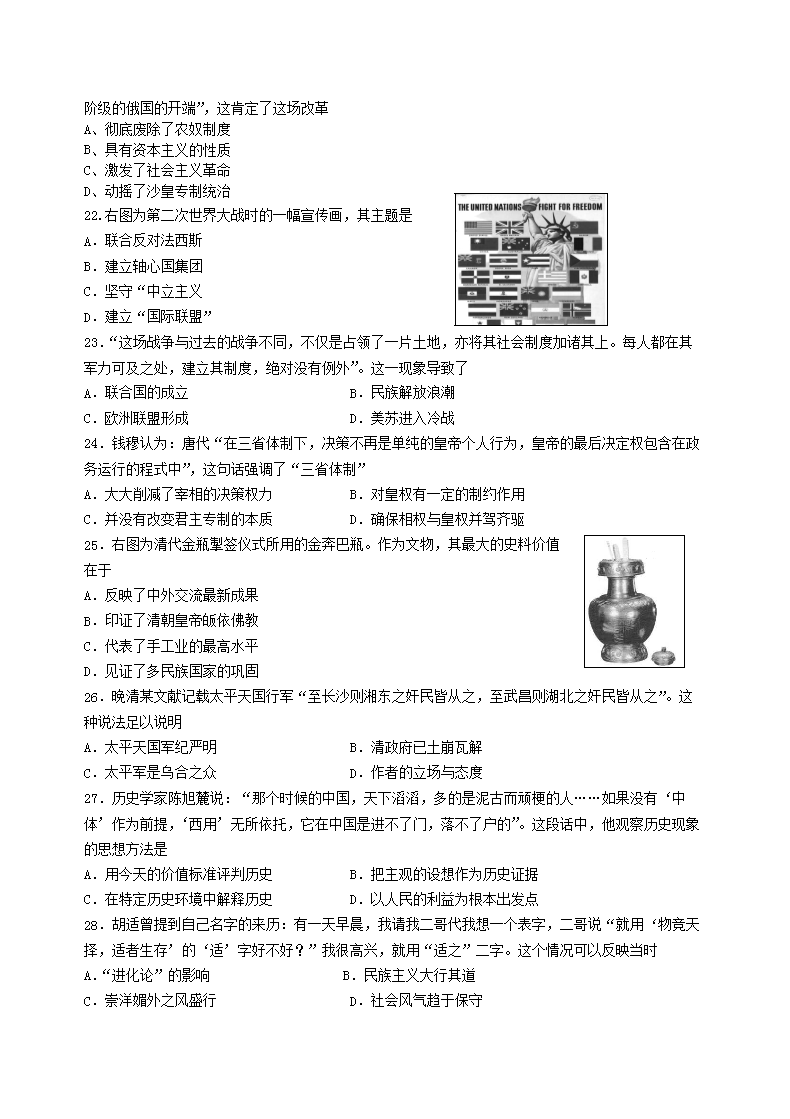 【文档名称】 2011年上海普通高中会考历史真题及答案(Word版).doc