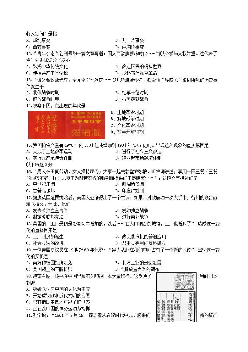 【文档预览】 无忧考网整理发布2011年上海普通高中会考历史真题及答案(Word版),前五页预览如下: