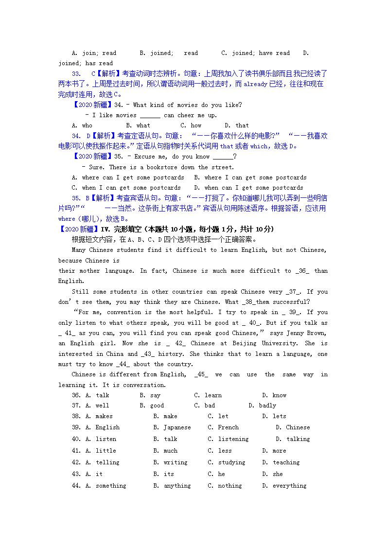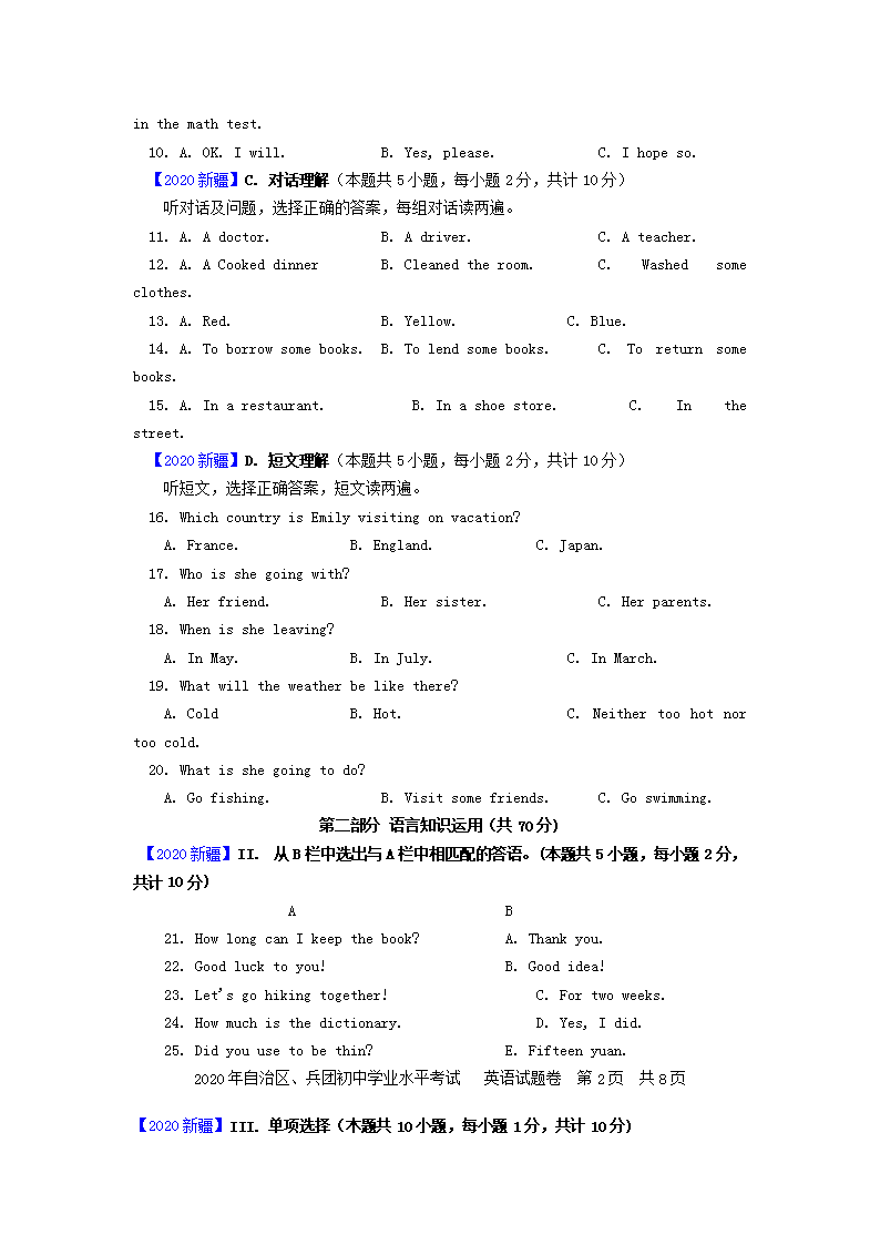 【文档预览】 无忧考网整理发布2020新疆中考英语真题及答案(Word版),前五页预览如下: