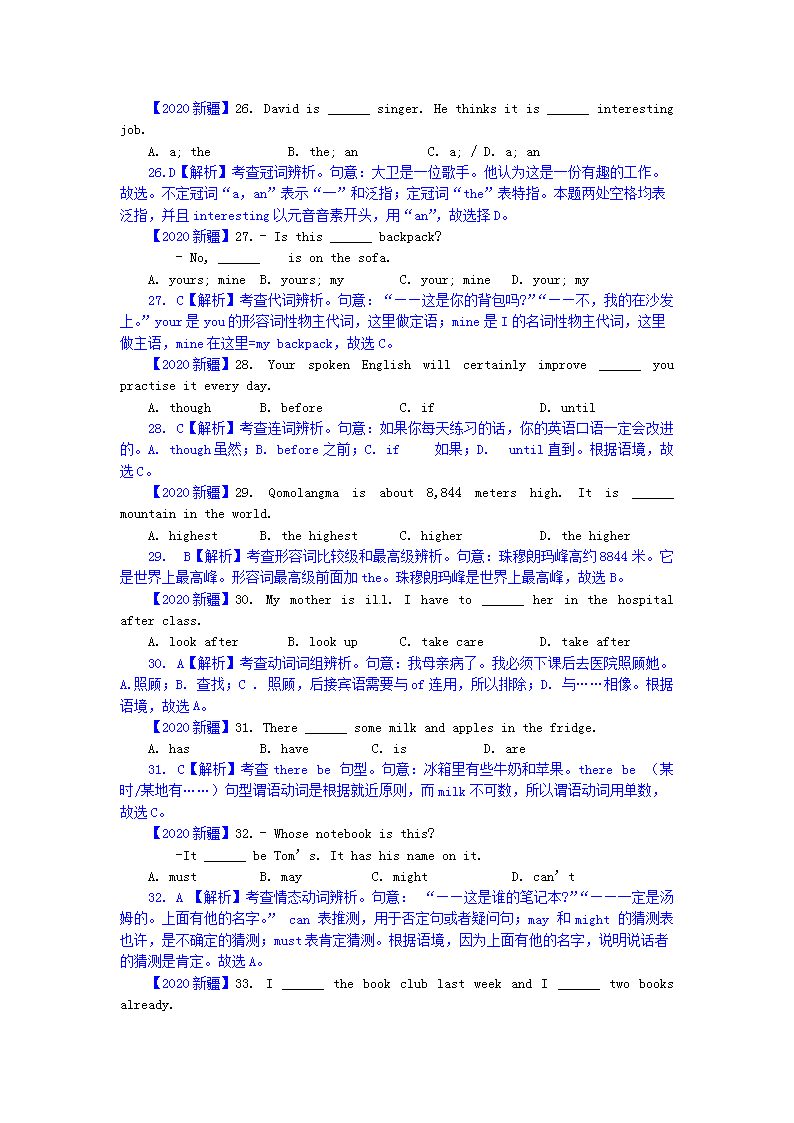 【文档名称】 2020新疆中考英语真题及答案(Word版).doc