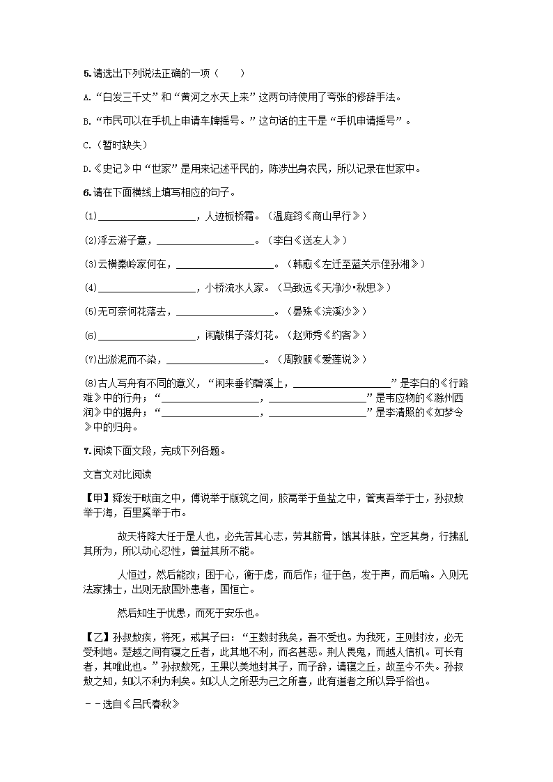 【文档名称】 2018年广东省深圳市中考语文试卷及答案(Word版).doc