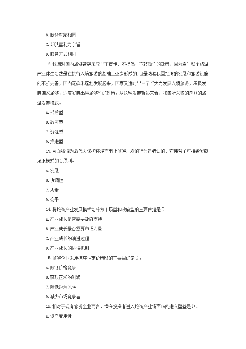 【文档名称】 2005年中级经济师旅游专业考试真题及答案(Word版).doc