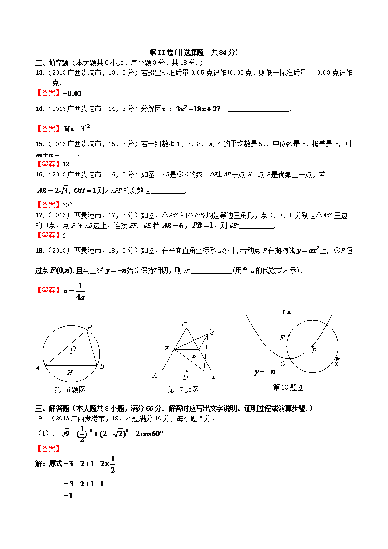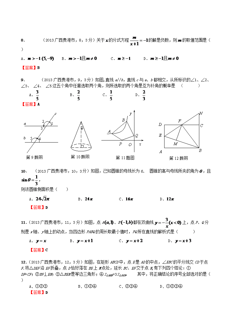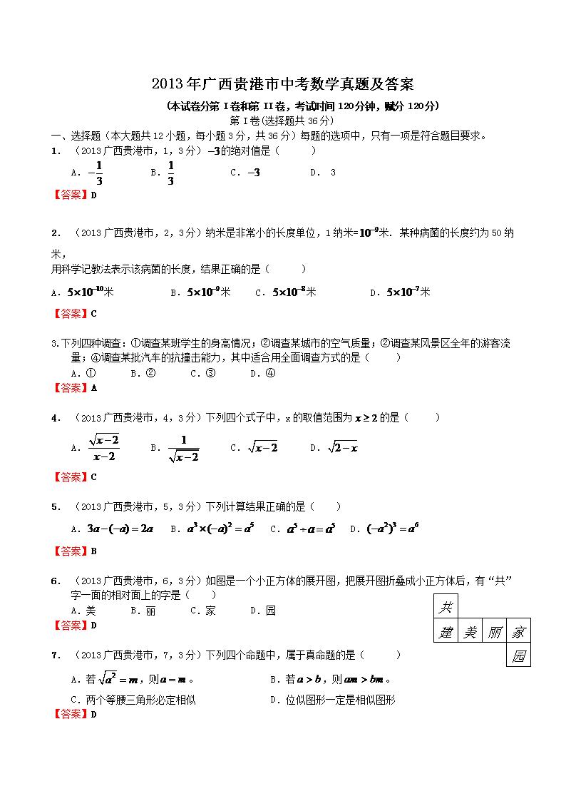 【文档名称】 2013年广西贵港市中考数学真题及答案(Word版).doc