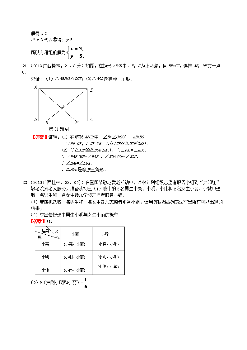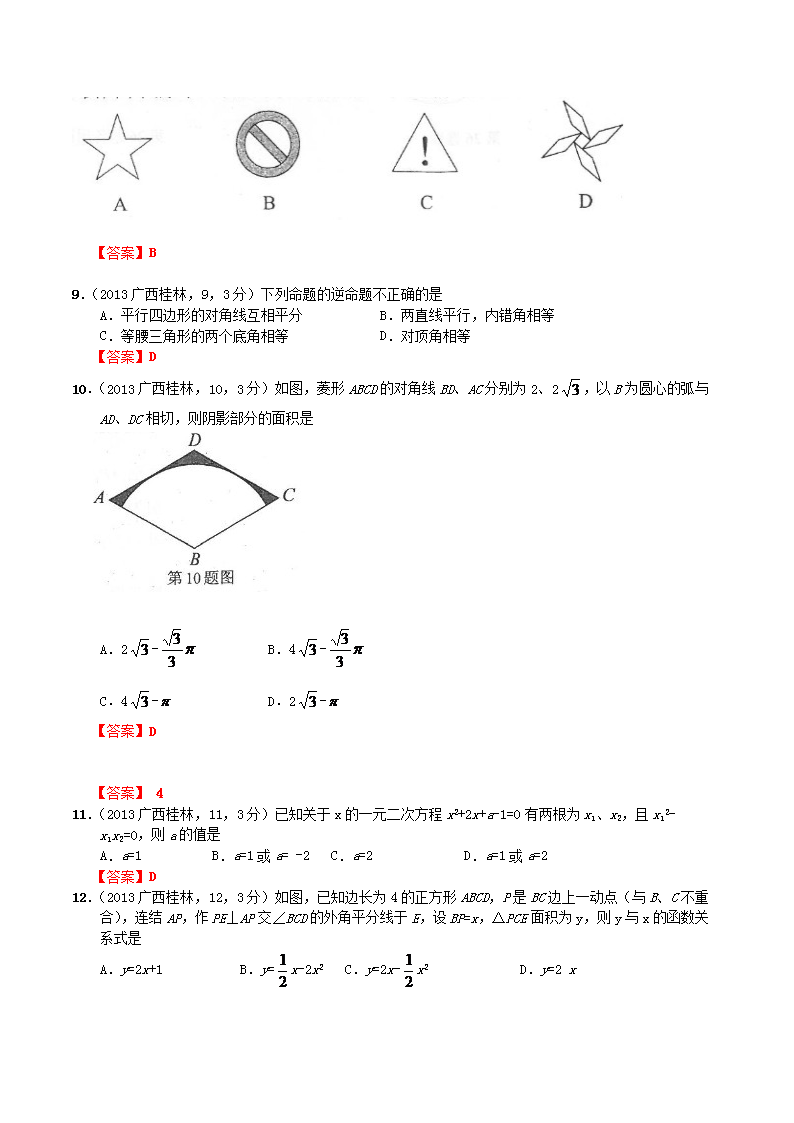 【文档名称】 2013年广西桂林市中考数学真题及答案(Word版).doc