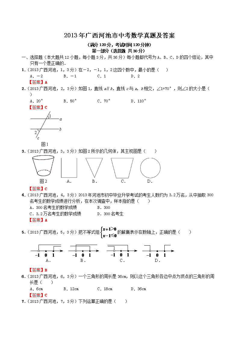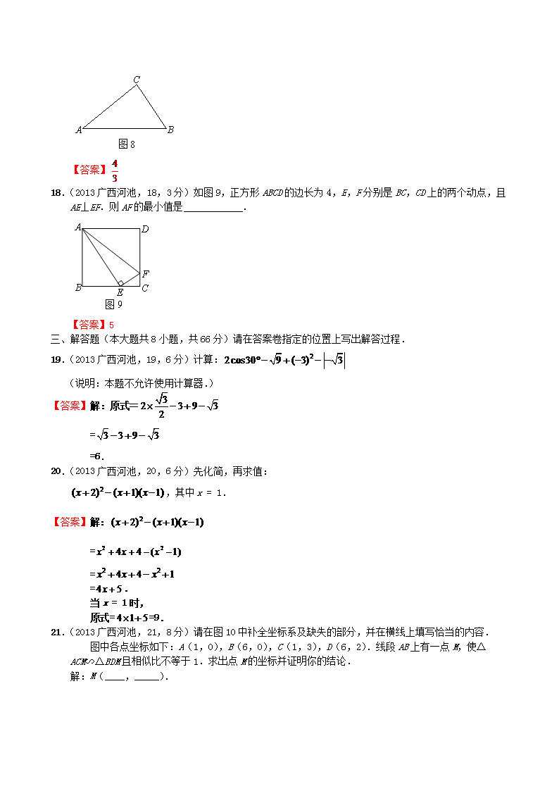 【文档名称】 2013年广西河池市中考数学真题及答案(Word版).doc
