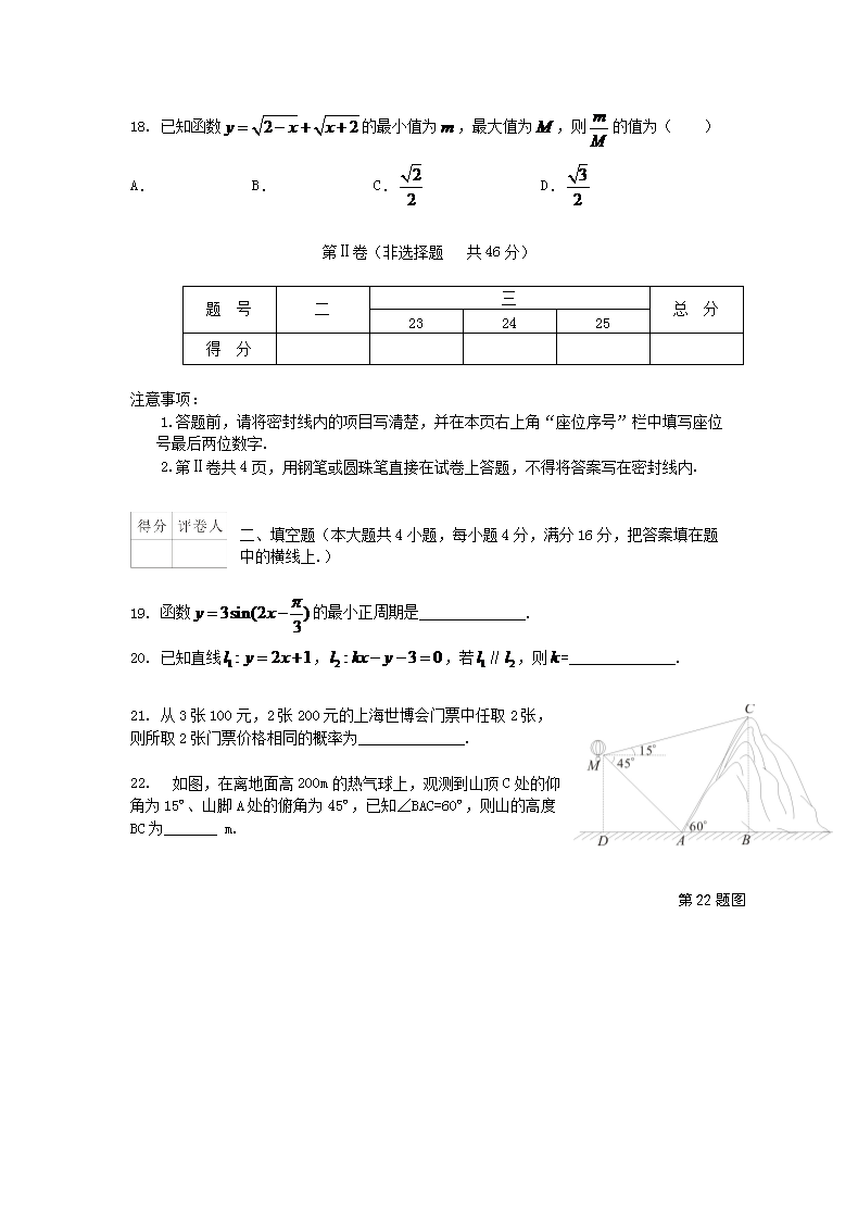 【文档预览】 无忧考网整理发布2010年安徽普通高中会考数学真题及答案(Word版),前五页预览如下: