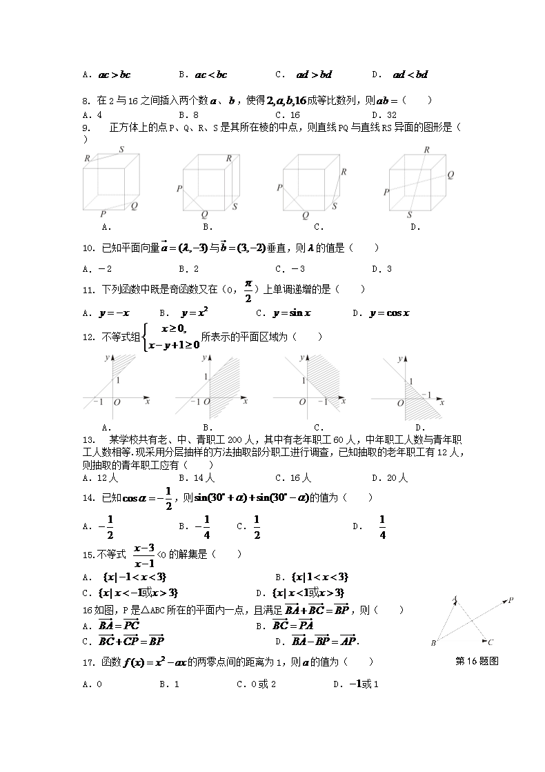 【文档名称】 2010年安徽普通高中会考数学真题及答案(Word版).doc