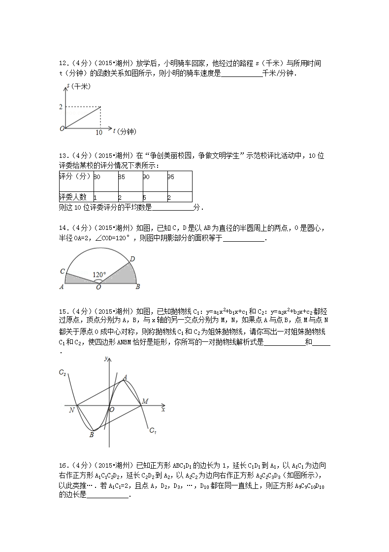 【文档名称】 2015浙江省湖州市中考数学真题及答案(Word版).doc
