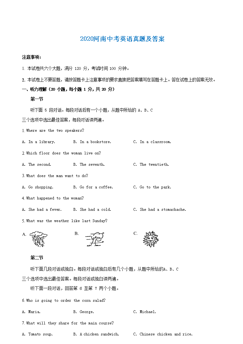 【文档预览】 无忧考网整理发布2020河南中考英语真题及答案(Word版),前五页预览如下: