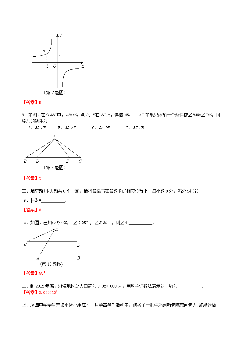 【文档预览】 无忧考网整理发布2013年湖南省湘潭市中考数学真题及答案(Word版),前五页预览如下: