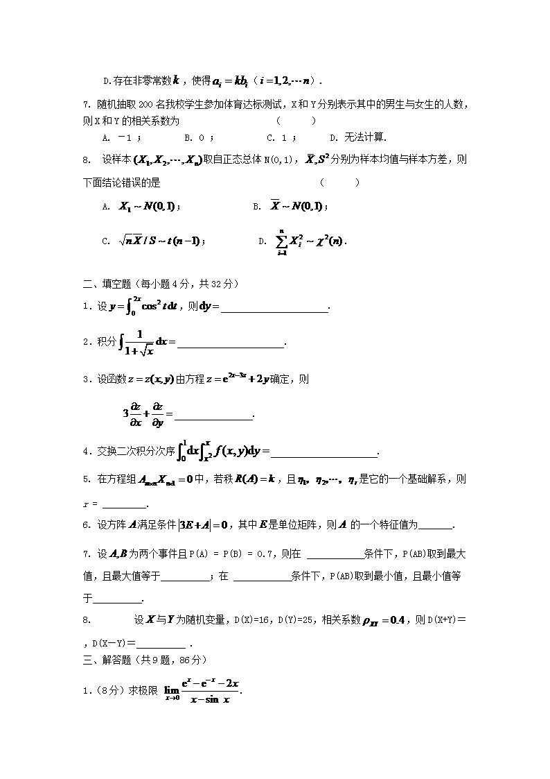 【文档名称】 2016年浙江农林大学数学(林)考研真题(Word版).doc