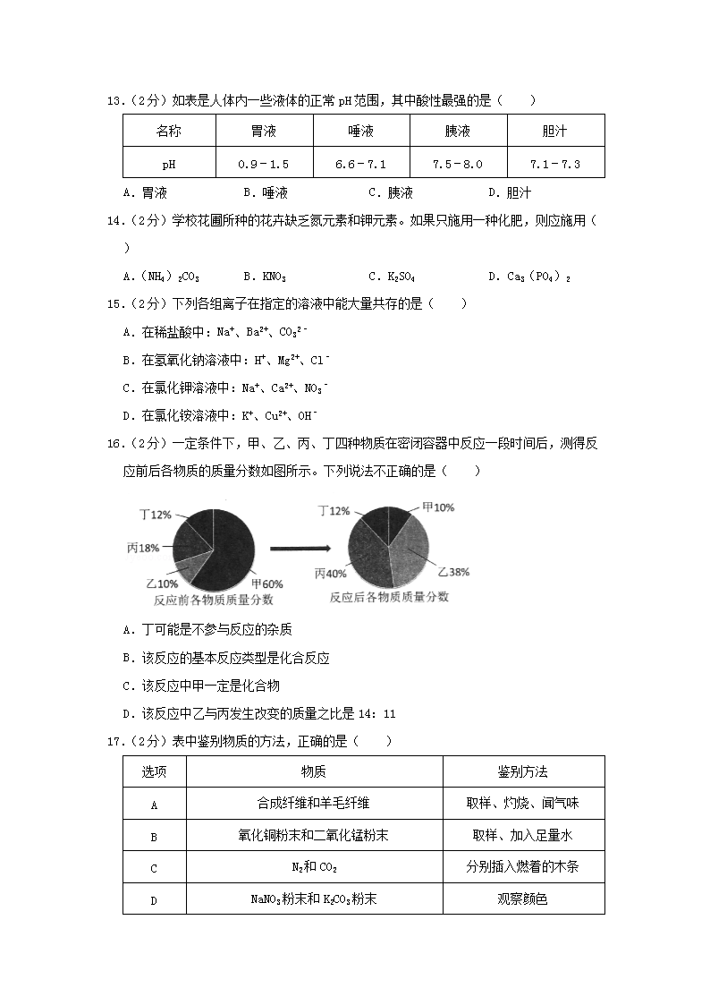 【文档名称】 2020年西藏中考化学试题及答案(Word版).doc