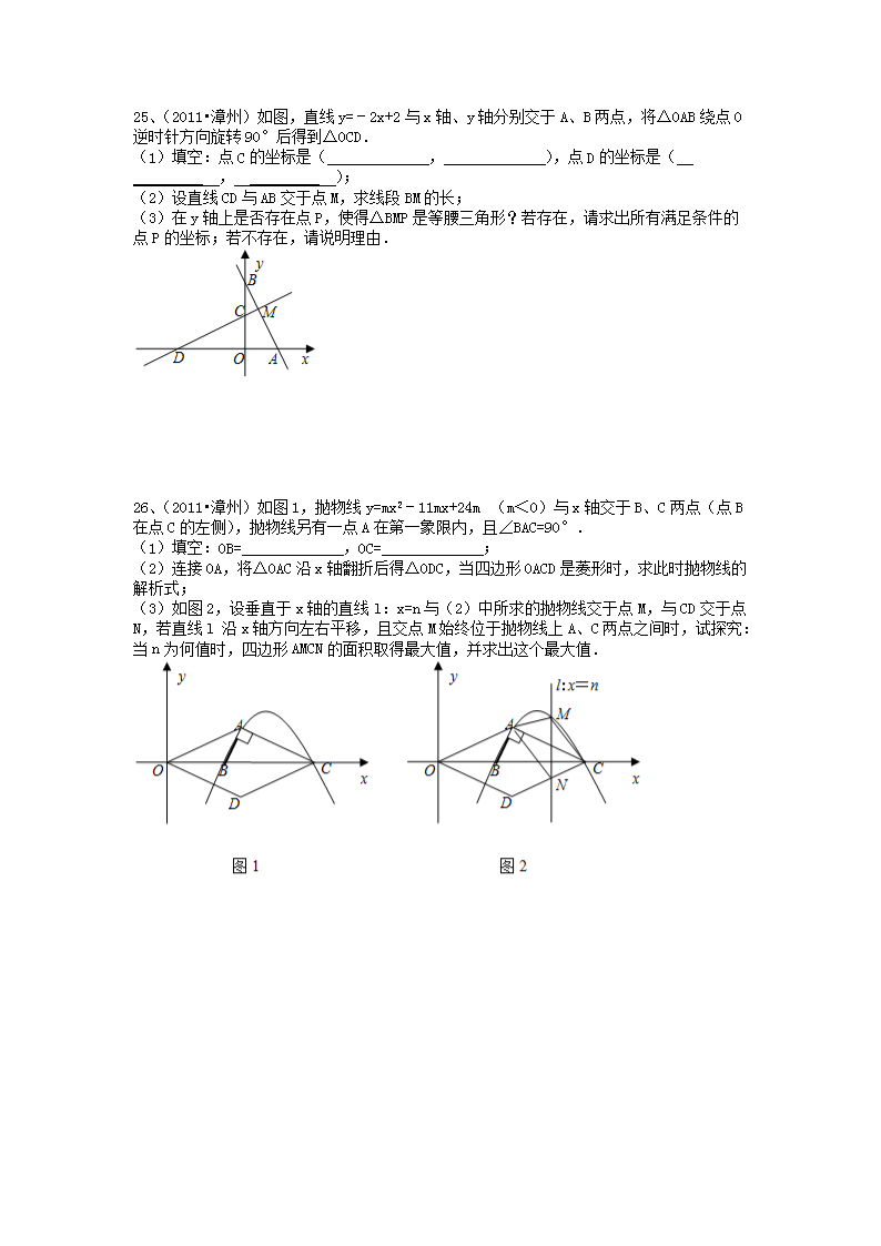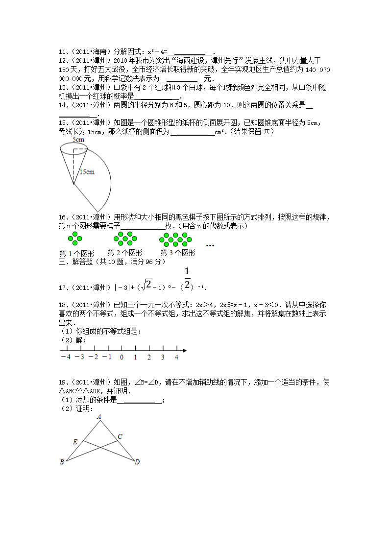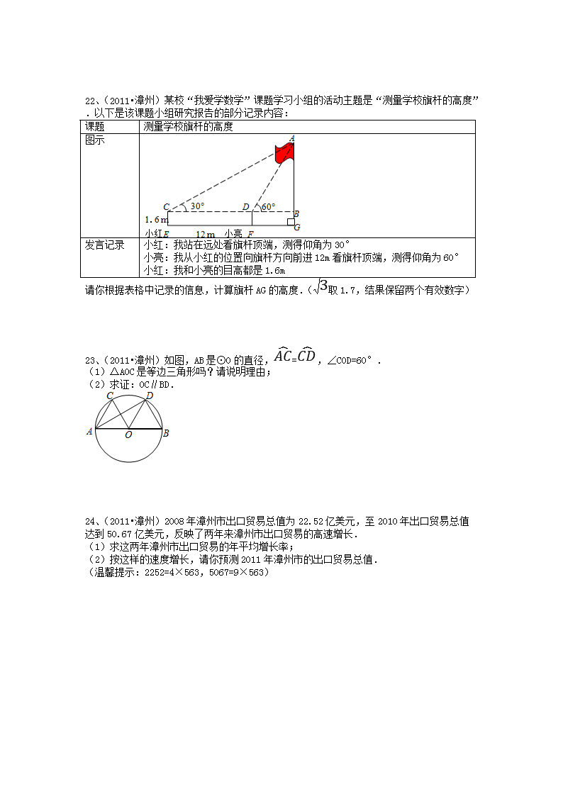 【文档预览】 无忧考网整理发布2011年福建省漳州市中考数学真题及答案(Word版),前五页预览如下: