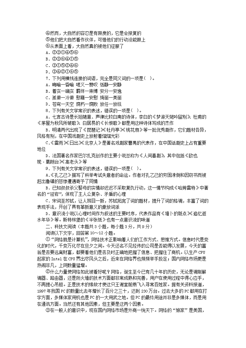 【文档预览】 无忧考网整理发布2017年天津蓟州区教育系统教师招聘考试语文真题及答案(Word版),前五页预览如下: