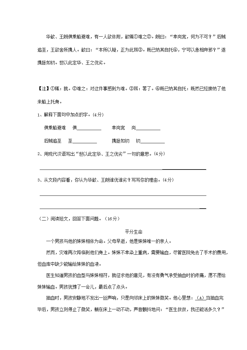 【文档预览】 无忧考网整理发布2012年北京小升初语文考试真题(Word版),前五页预览如下: