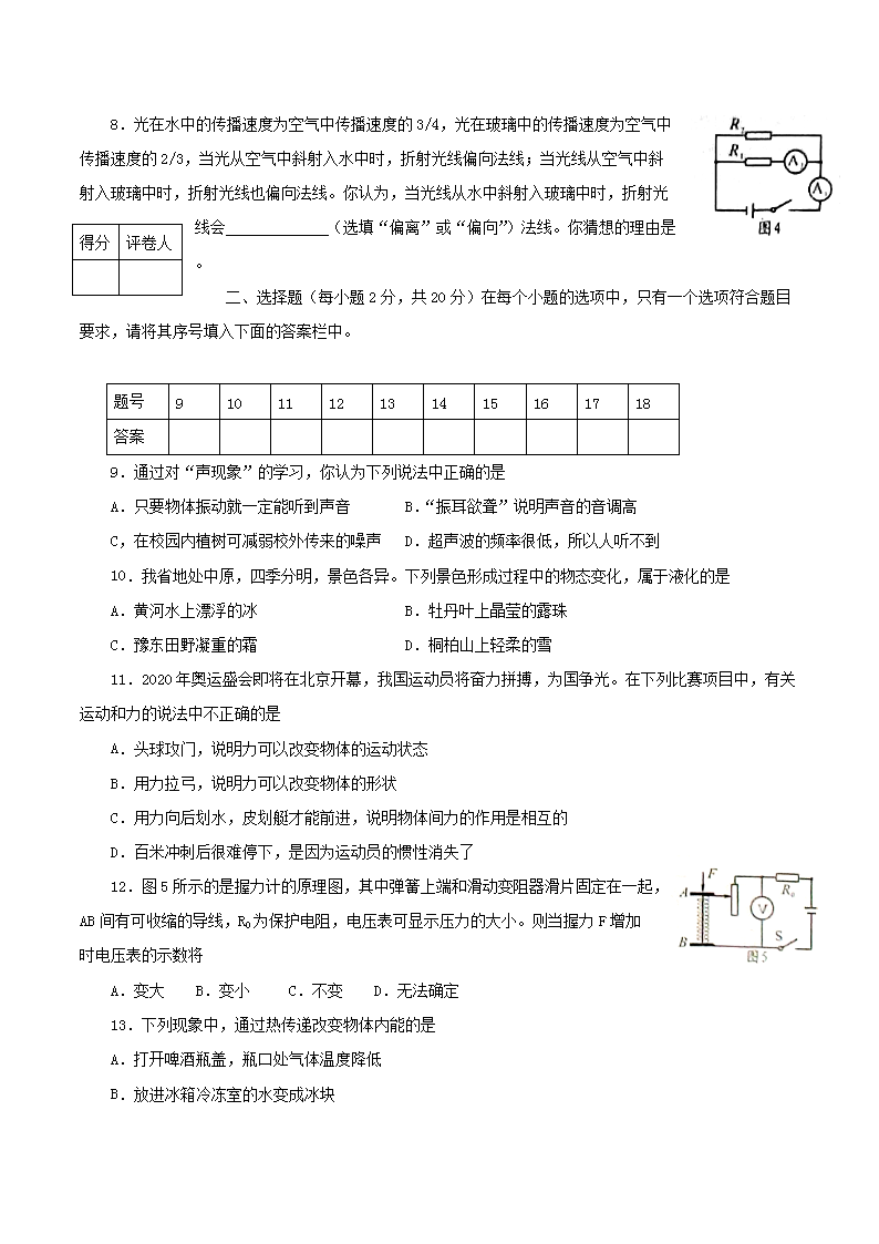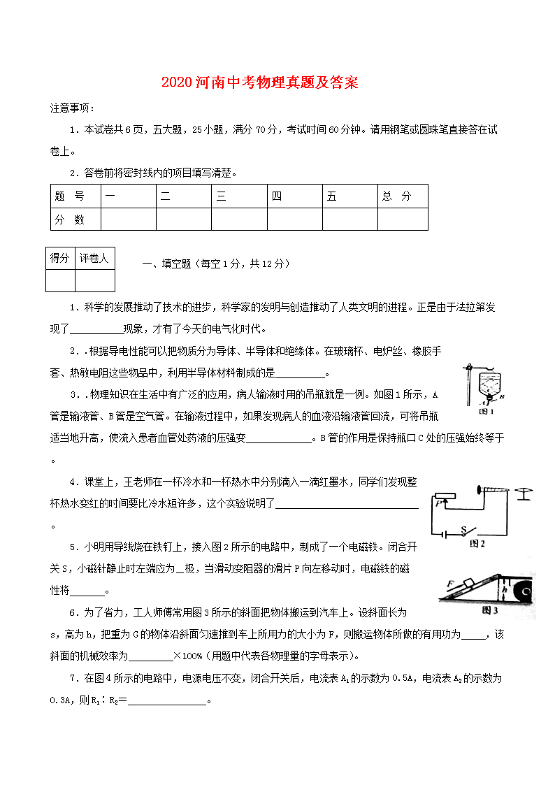 【文档名称】 2020河南中考物理真题及答案(Word版).doc