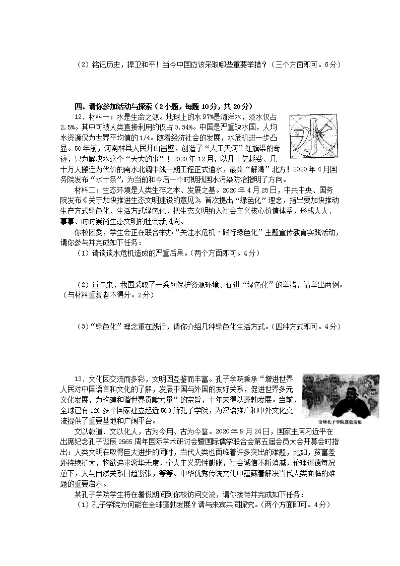 【文档名称】 2020河南中考道德与法治真题及答案(Word版).doc