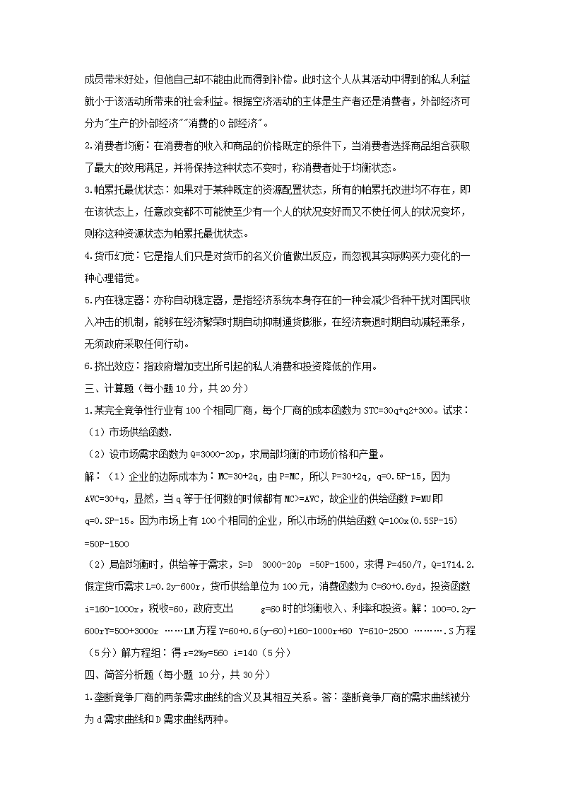 【文档名称】 2006年山西财经大学西方经济学考研真题及答案(Word版).doc