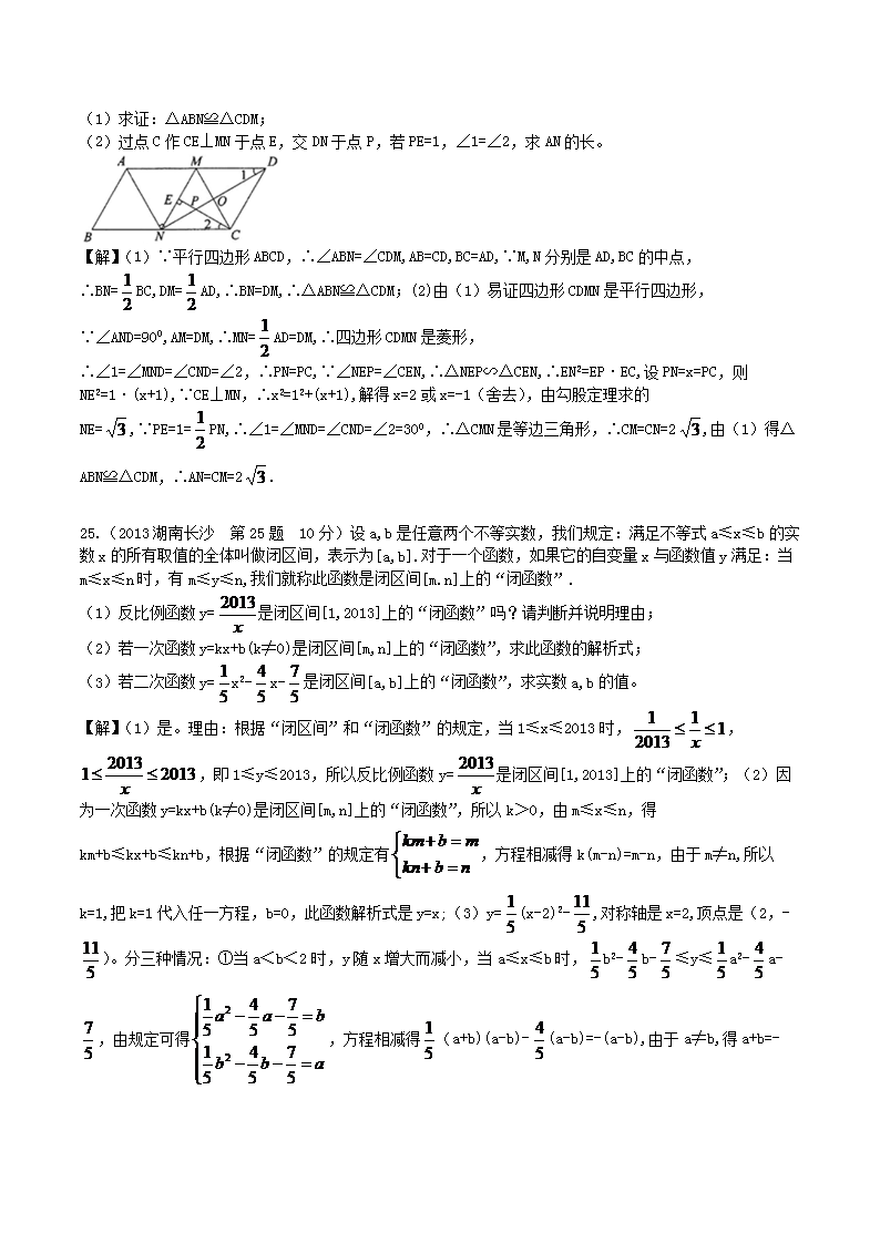 【文档预览】 无忧考网整理发布2013年湖南省长沙市中考数学真题及答案(Word版),前五页预览如下: