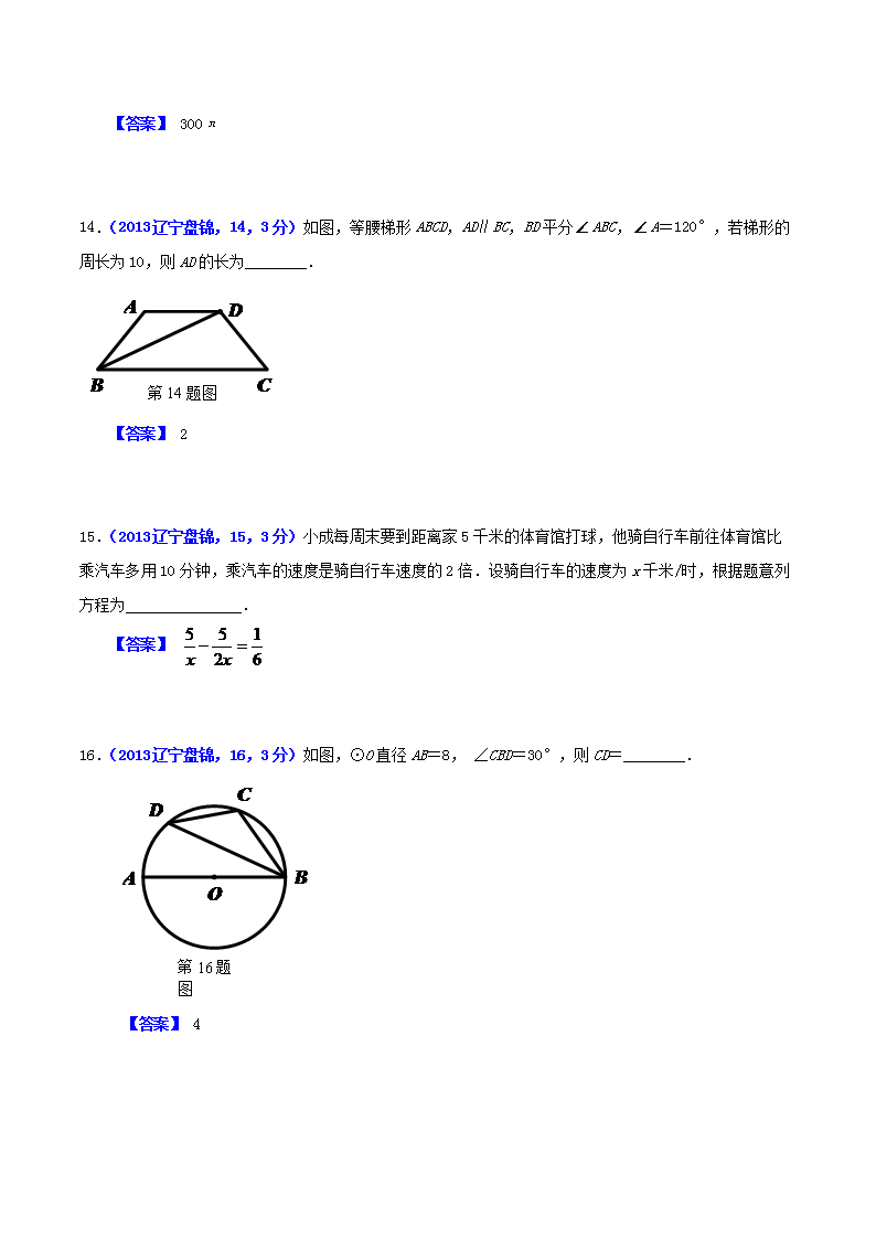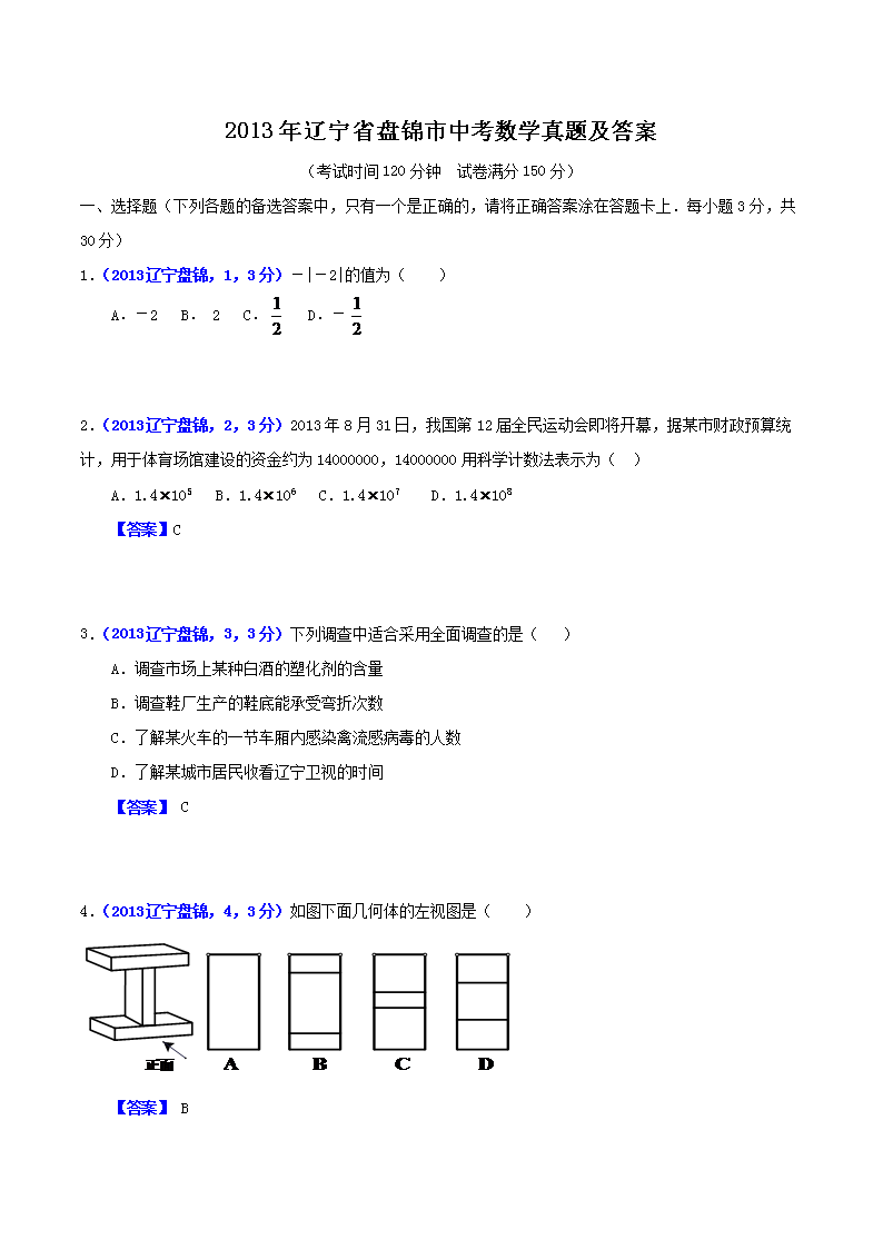 【文档名称】 2013年辽宁省盘锦市中考数学真题及答案(Word版).doc