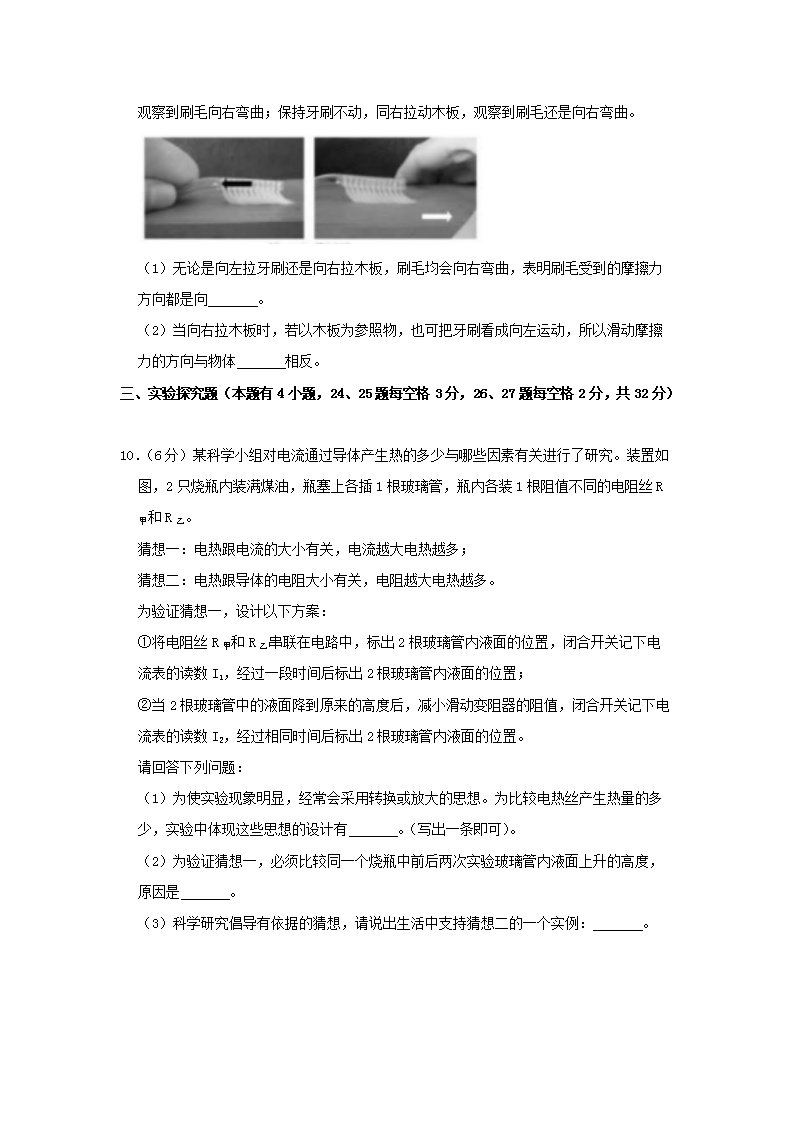 【文档名称】 2019浙江省嘉兴市中考物理真题及答案(Word版).doc