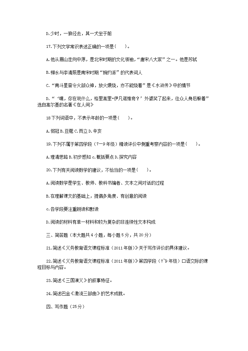 【文档预览】 无忧考网整理发布2017年吉林特岗教师招聘考试中学语文真题(Word版),前五页预览如下: