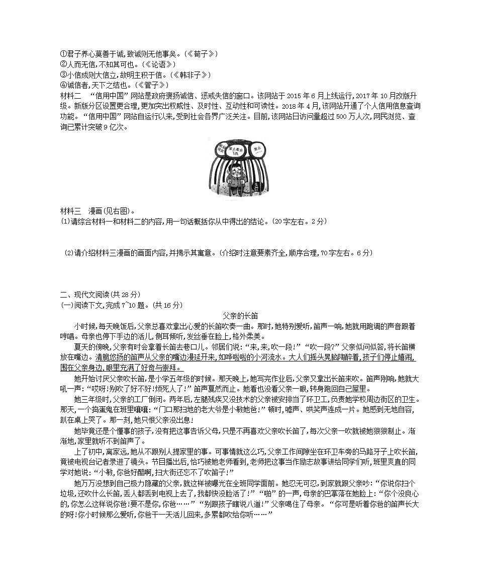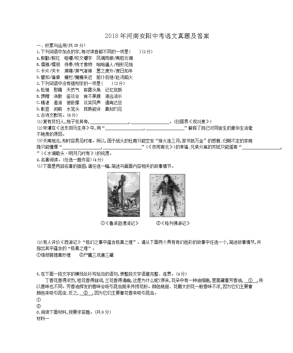 【文档名称】 2018年河南安阳中考语文真题及答案(Word版).doc