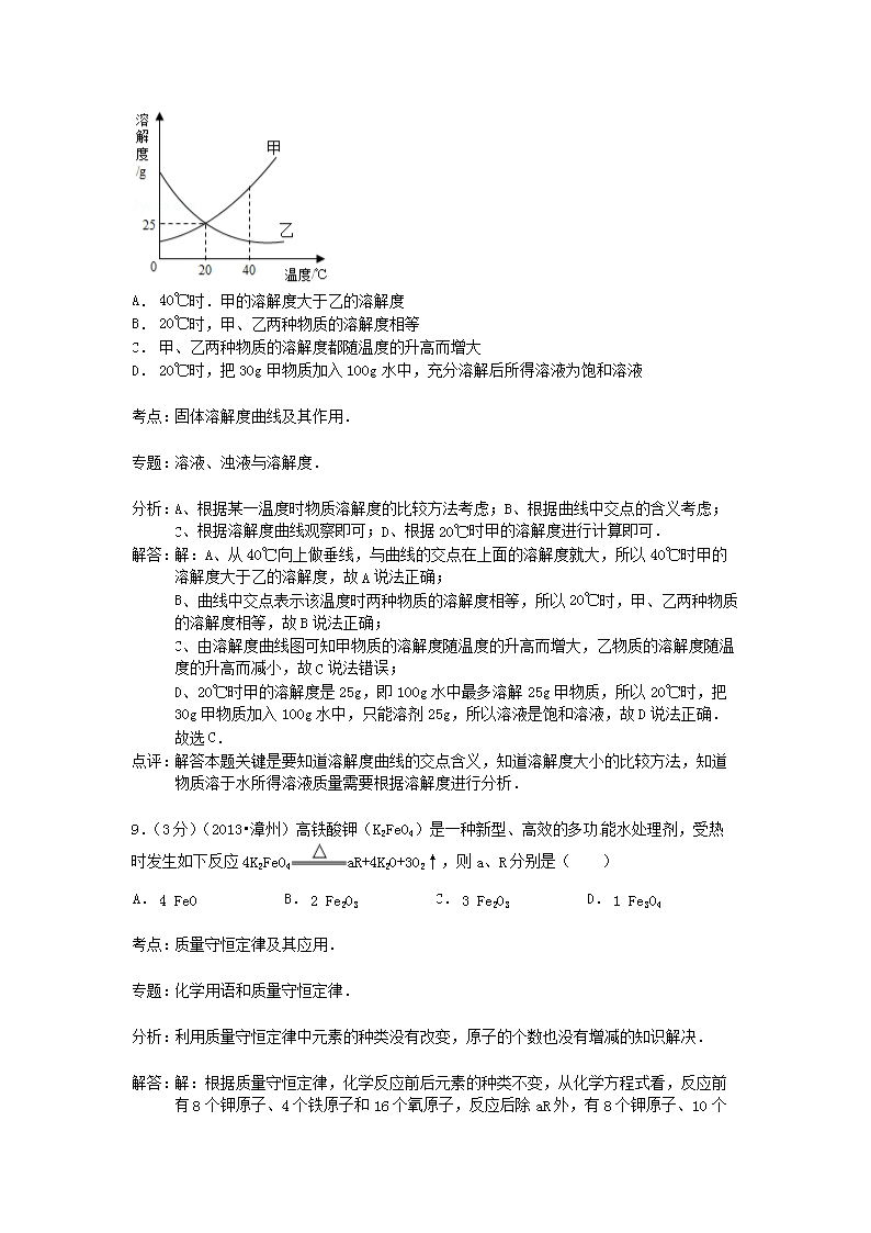 【文档名称】 2013年福建省漳州市中考化学真题及答案(Word版).doc
